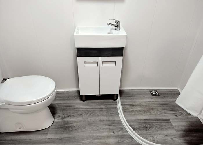 Als aanvulling op de woonbeleving heeft het München Tiny House een goed ontworpen badkamer met alle benodigde voorzieningen.de badkamer biedt functionaliteit zonder afbreuk te doen aan stijl, waardoor een comfortabele en verfrissende ruimte ontstaat.