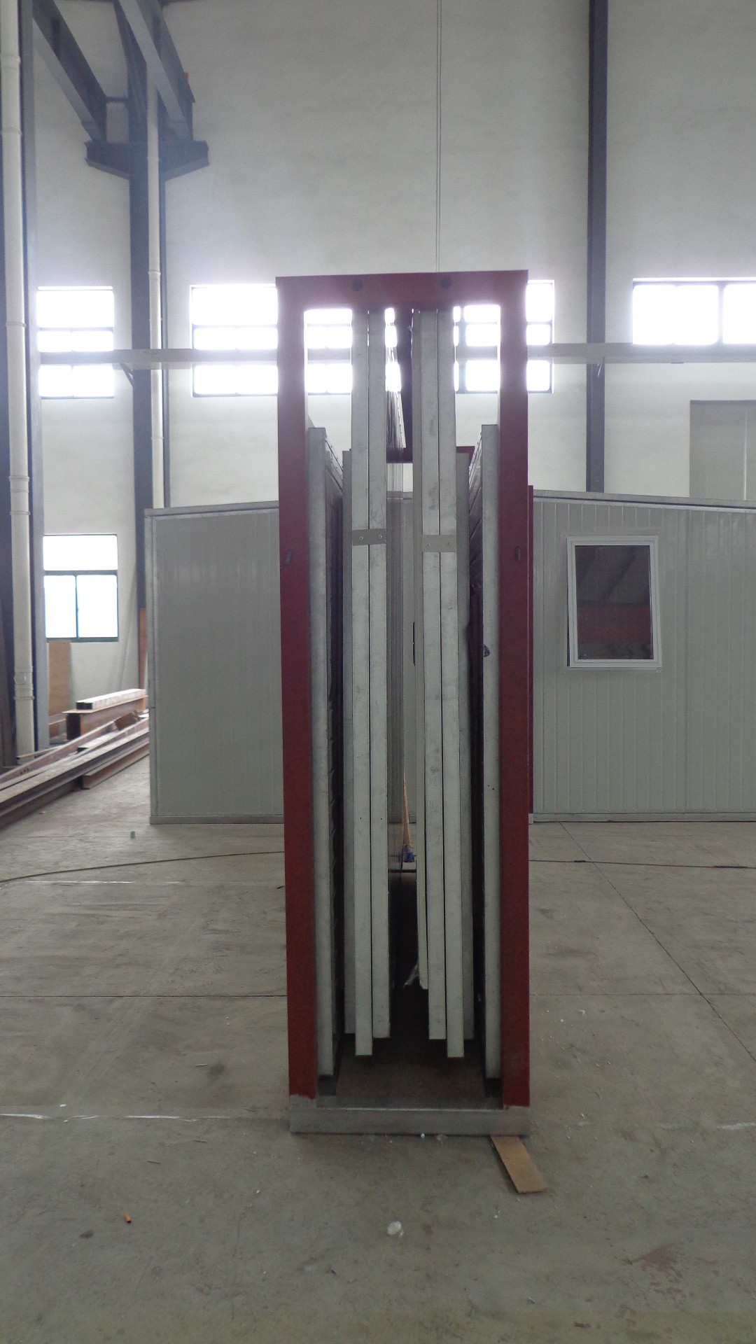 Wandpanelen zijn gemaakt van 50 mm met een dichtheid van 10 kg EPS-schuim sandwichpaneel. Alle panelen zijn in de fabriek bevestigd en scharnierend met het dakpaneel. De dikte van het staal voor het paneel is 0,35 mm buiten en 0,35 mm binnen.